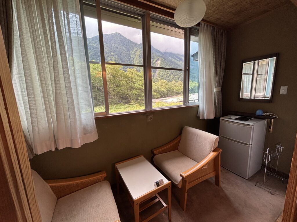 トイレとバスタブも完備で、何より部屋から穂高連峰が一望できる絶景に感動しました。
