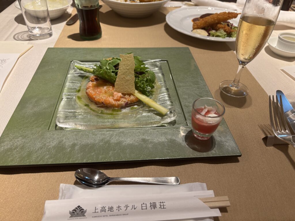 夕食は17:30スタートのフルコース。子どもたちにはカレーなどの別メニューが用意されていて、「美味しい!」と大喜び。