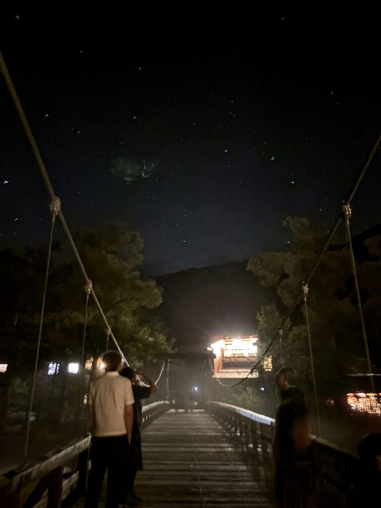 夜の河童橋。ナイトツアーの後に家族で少し夜のお散歩。ナイトツアーで見た星よりは数が少なかったですが、十分に美しい星々を眺めることができました。