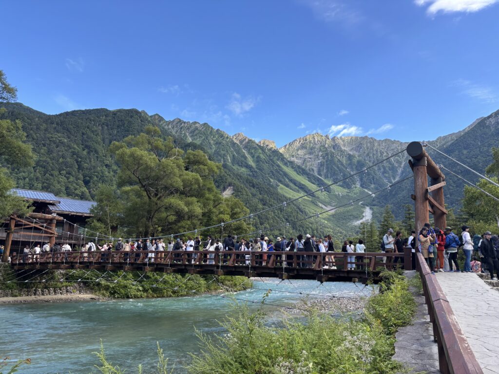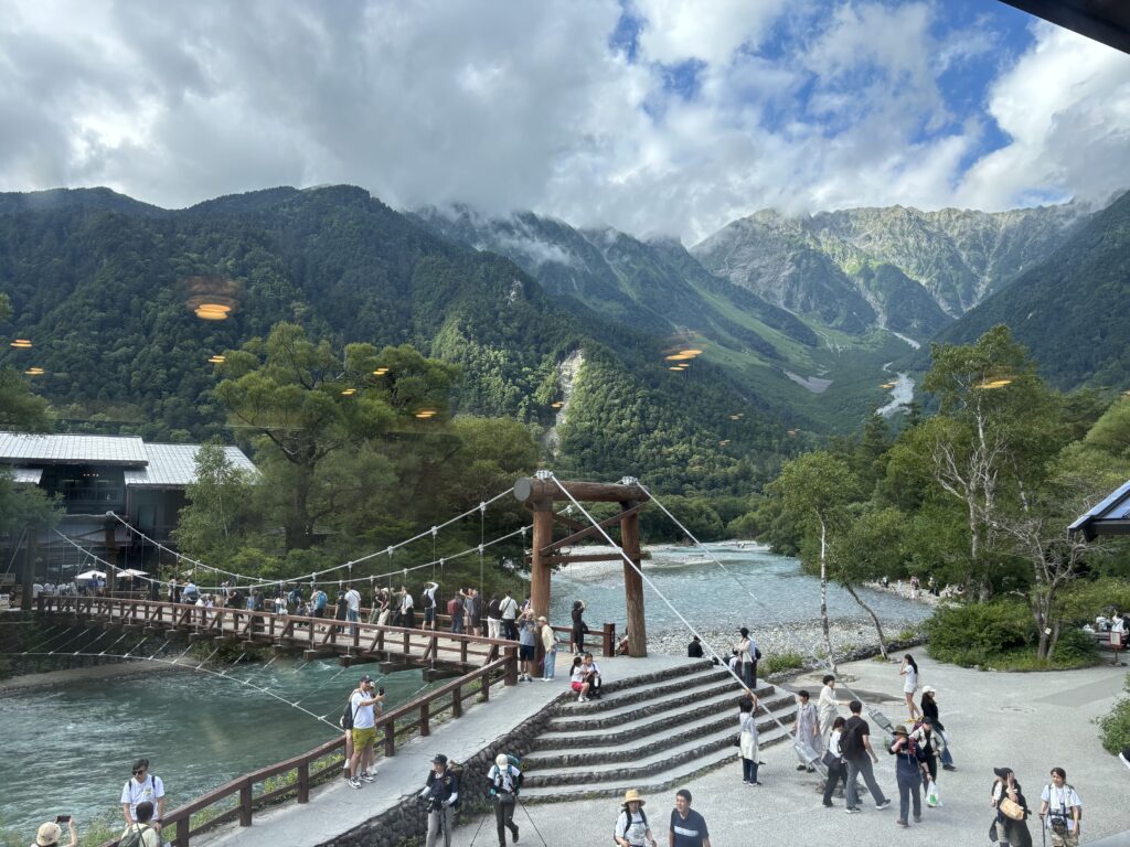 お盆を過ぎた平日にもかかわらず、河童橋周辺は多くの観光客でにぎわっていました。みんなが同じように景色に見とれていて、なんだかとても幸せな空気が流れていました😊