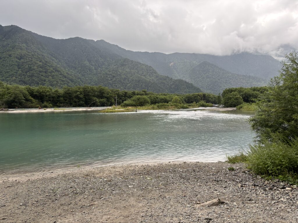 目の前に広がる穂高連峰と梓川の美しい景色に、思わず息をのみました。透き通るような川の色と、雄大な山々のコントラストが本当に見事です。